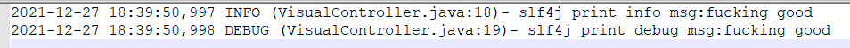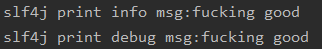 这里通过http://localhost:8080/test访问可以看到控制台输出如下,可以看到info的输出了,debug没有,因为springboot内部集成了slf4j,默认是info级别: