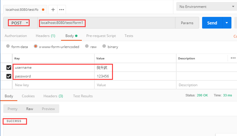 我们使用 postman 来模拟一下表单提交,测试一下接口:
